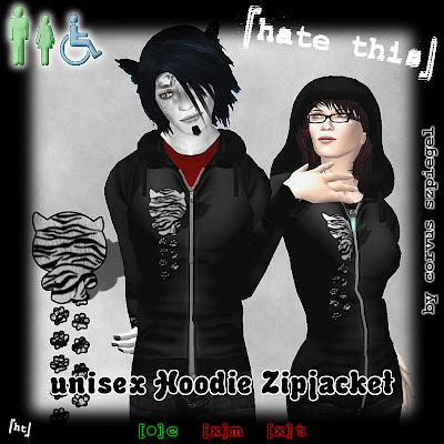 Tonight started a cooperative treasure hunt of Cilian'gel and [hate this]. Four original outfits, designed exclusively for the hunt, are hidden at Cilian'gel's mainstore in Valefar. Cilia Shepherd, the owner of Cilian'gel, and I made each a female and male/unisex outfit. Hunt for FREE pumpkins at Valefar!